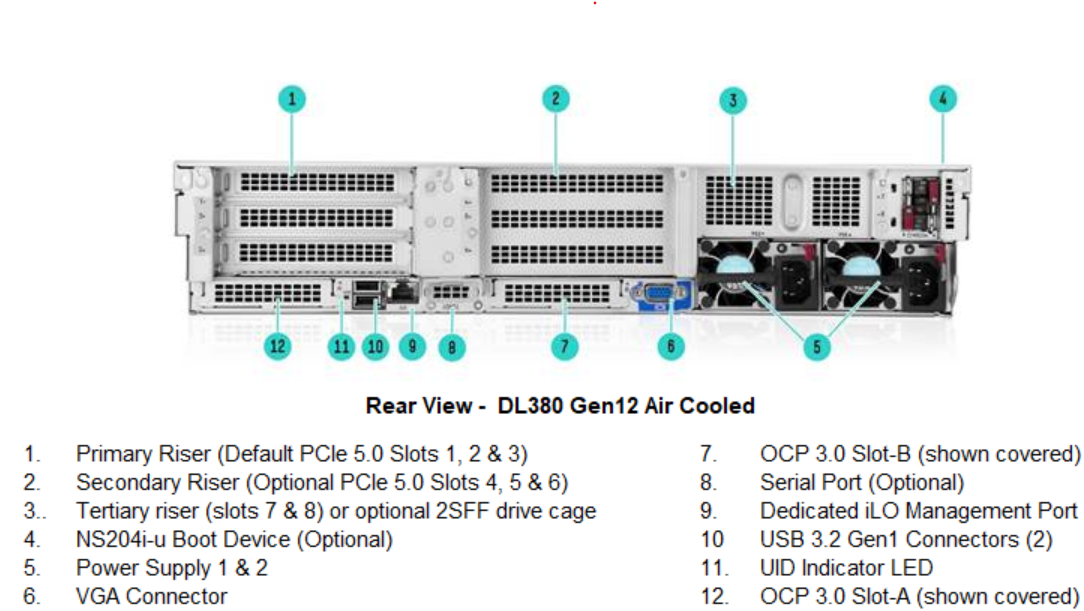 - Cổng quản lý iLO (tùy chọn) – Cho phép giám sát và điều khiển máy chủ từ xa.