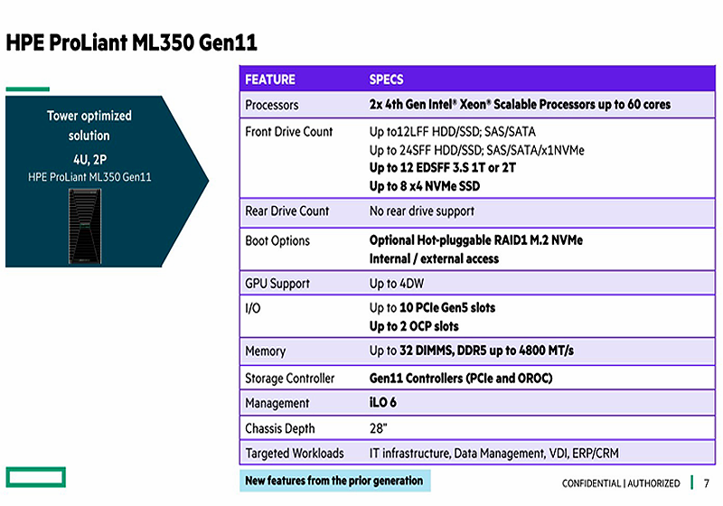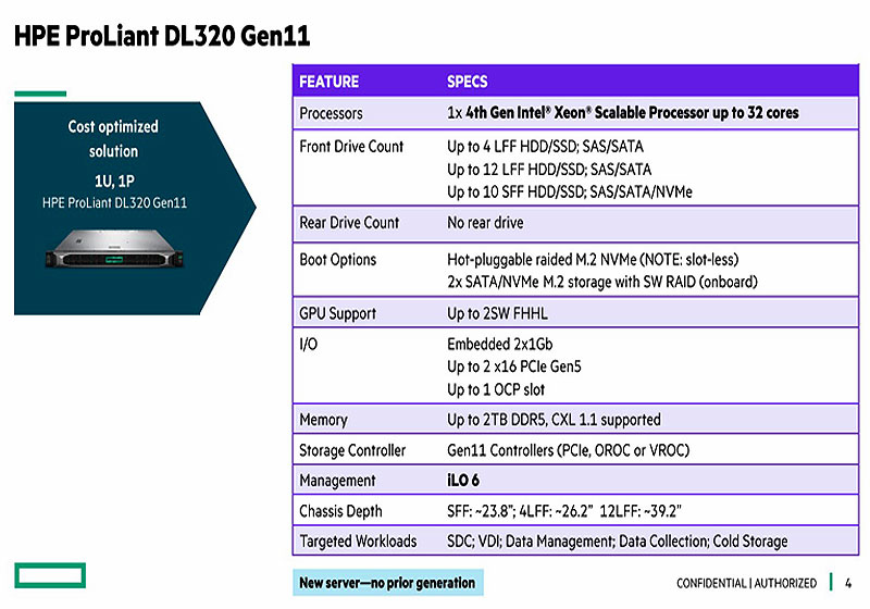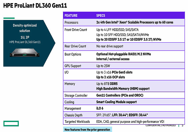 Công ty Hewlett Packard Enterprise đã giới thiệu dòng máy chủ Gen11 sử dụng bộ xử lý Intel Xeon Scalable thế hệ thứ 4, có tên mã là "Sapphire Rapids". Đây là một nền tảng hoàn toàn mới với các tính năng như DDR5, PCIe Gen5, CXL, EDSFF, v.v..
