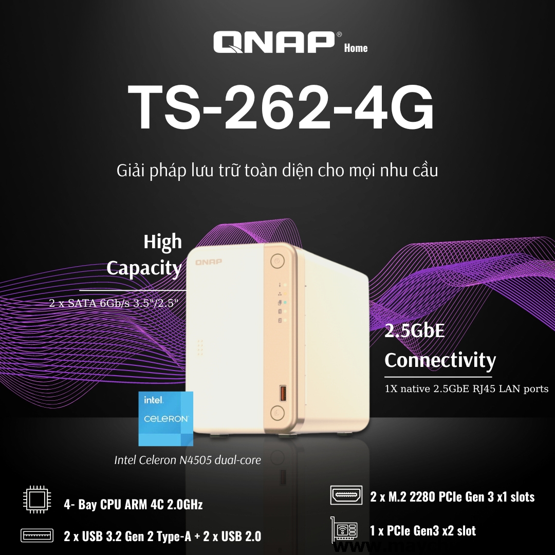 Thiết bị 2-bay desktop NAS này được thiết kế để cung cấp một giải pháp lưu trữ mạnh mẽ và linh hoạt, phù hợp cho gia đình hoặc văn phòng nhỏ. Với bộ vi xử lý Intel Celeron N4505, thiết bị này cung cấp hiệu suất tốt cho các tác vụ lưu trữ, chia sẻ tệp tin, và quản lý dữ liệu trong một thiết kế nhỏ gọn và tiết kiệm năng lượng.