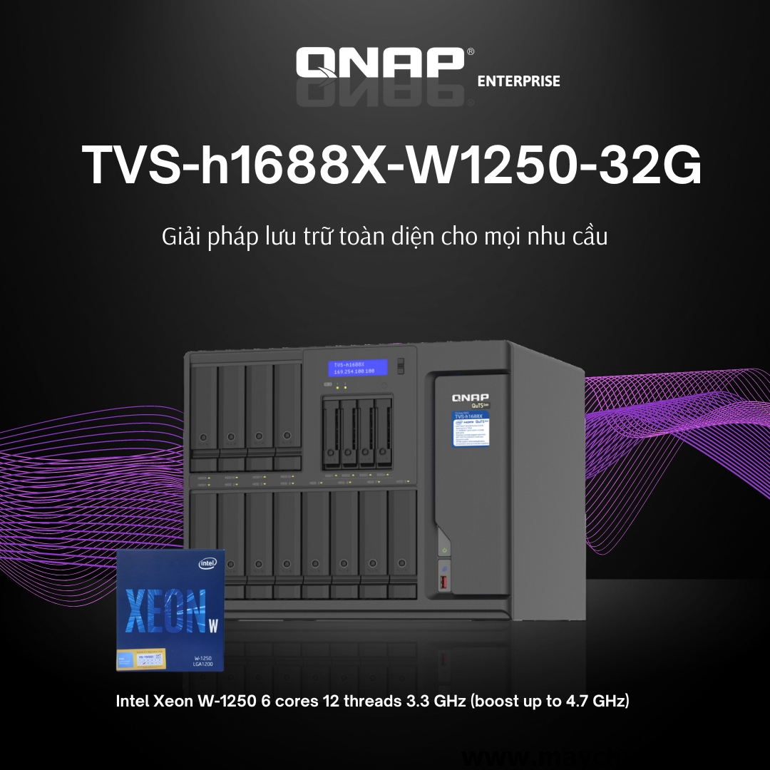 TVS-h1688X-W1250-32G là một giải pháp NAS hiệu suất cao, được trang bị 16 khay lưu trữ (12 HDD + 4 SSD), mang lại khả năng lưu trữ lớn cho các doanh nghiệp. Với bộ vi xử lý Intel Xeon W-1250 mạnh mẽ, RAM ECC DDR4 32GB, và khả năng nâng cấp lên tới 128GB, thiết bị này có thể xử lý các tác vụ nặng như ảo hóa, lưu trữ dữ liệu lớn, và các ứng dụng doanh nghiệp đòi hỏi cao.